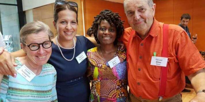 På bildet fra høyre:Cesilie Aurbakken, Norge, Tatjana Brankov,landbruksøkonom,Serbia, Janet Maro, direktør for Sustainable Agriculture Tanzania og Gerald Miles, gårdbruker Wales.